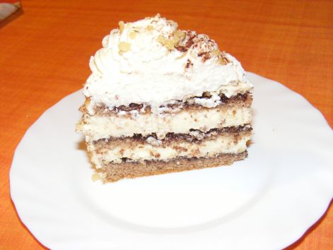rá tesszük a krémet és megszórjuk durvára darált dióval. Az oldalára a krém és a dió.